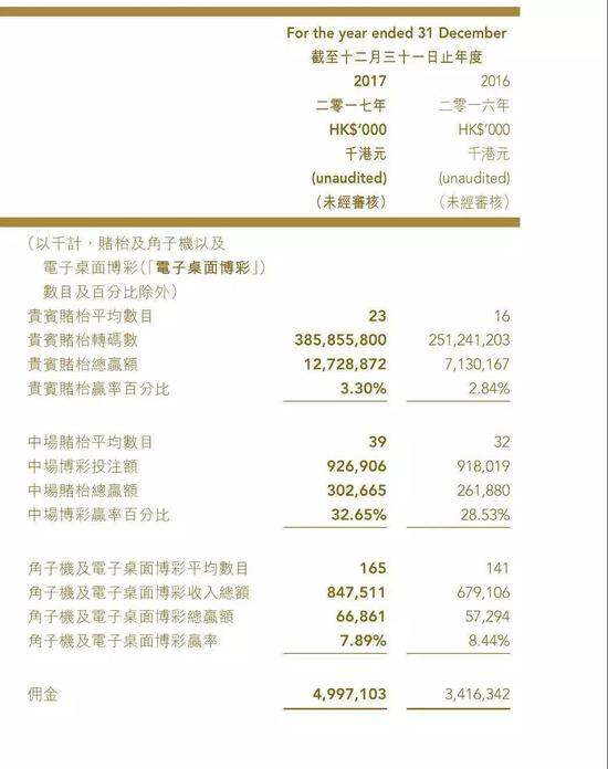 博华太平洋上月公布的2017年财报显示,其去年营收同比增长75.7%至131.6亿港元,其中96.7%来自贵宾柜台,即“豪客”。这些“豪客”在塞班岛上一掷千金,全年“贵宾赌台转码数”达到3858亿港元(495亿美元),平均每月超过40亿美元。2016年这一数字为2512亿港元。