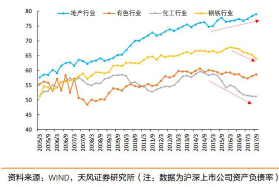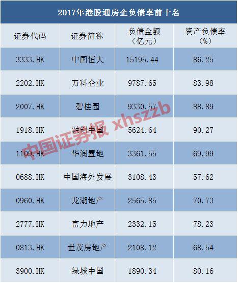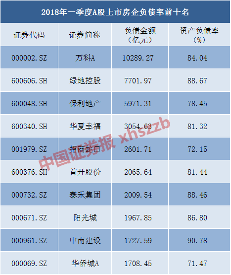 Wind数据显示,2017年A股128家上市房企负债合计达到6.51万亿,平均资产负债率64.56%,其中63家房企负债超过百亿,34家房企资产负债率已经超过80%。今年一季度,A股128家上市房企负债合计达到6.86万亿,平均资产负债率64.13%,负债超过百亿的房企增加到67家,资产负债率超过80%的房企数量35家。
