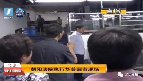 今天上午,朝阳法院执行局出动了数十人,兵分两路,对知名的华普超市采取强制执行措施,并对执行全程进行了全媒体直播。