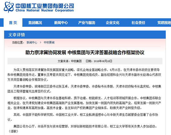 战略协议显示,中核集团将联合相关企业,在津规划建设中核集团高端新产业发展基地,加快发展一批国内领先的高端产业,培育发展一批新兴产业,在天津构建具有高附加值、高技术含量、自主知识产权的集团产业链体系。