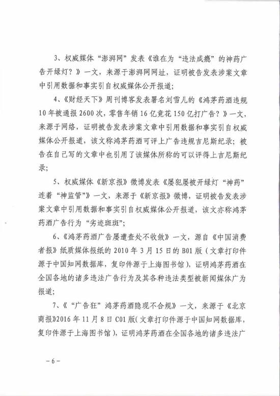 “鸿茅药酒”起诉称,文章标题拟为“广告史劣迹斑斑的鸿茅药酒”,这种表述不但违背事实,而且误导读者,诋毁鸿茅国药商誉,贬低鸿茅药酒品牌形象;同时,文章以“这12件典型虚假广告涉嫌违法,已被依法查处”开头极为吸引读者眼球,但这12件中并不包含鸿茅药酒。